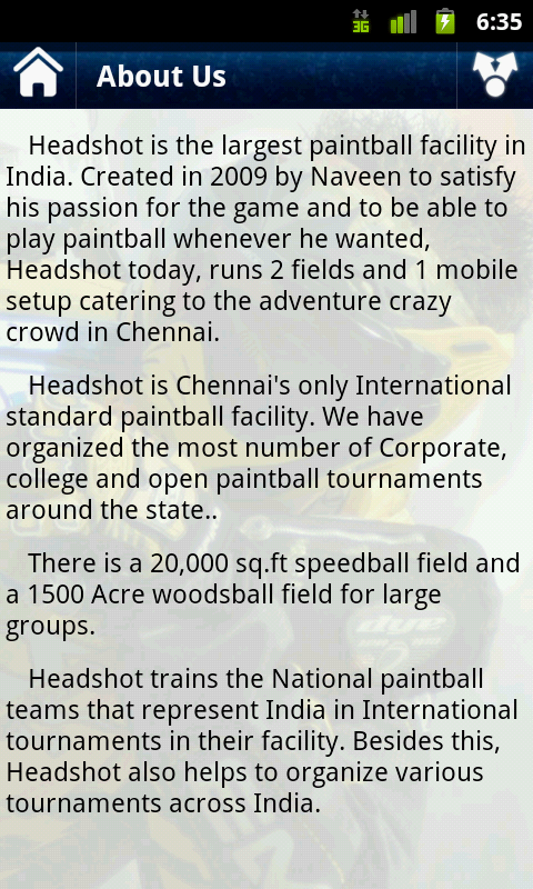 Headshot is the largest paintball facility in India. Created in 2009 by Naveen to satisfy his passion for the game and to be able to play paintball whenever he wanted, Headshot today, runs 2 fields and 1 mobile setup catering to the adventure crazy crowd in Chennai..........
