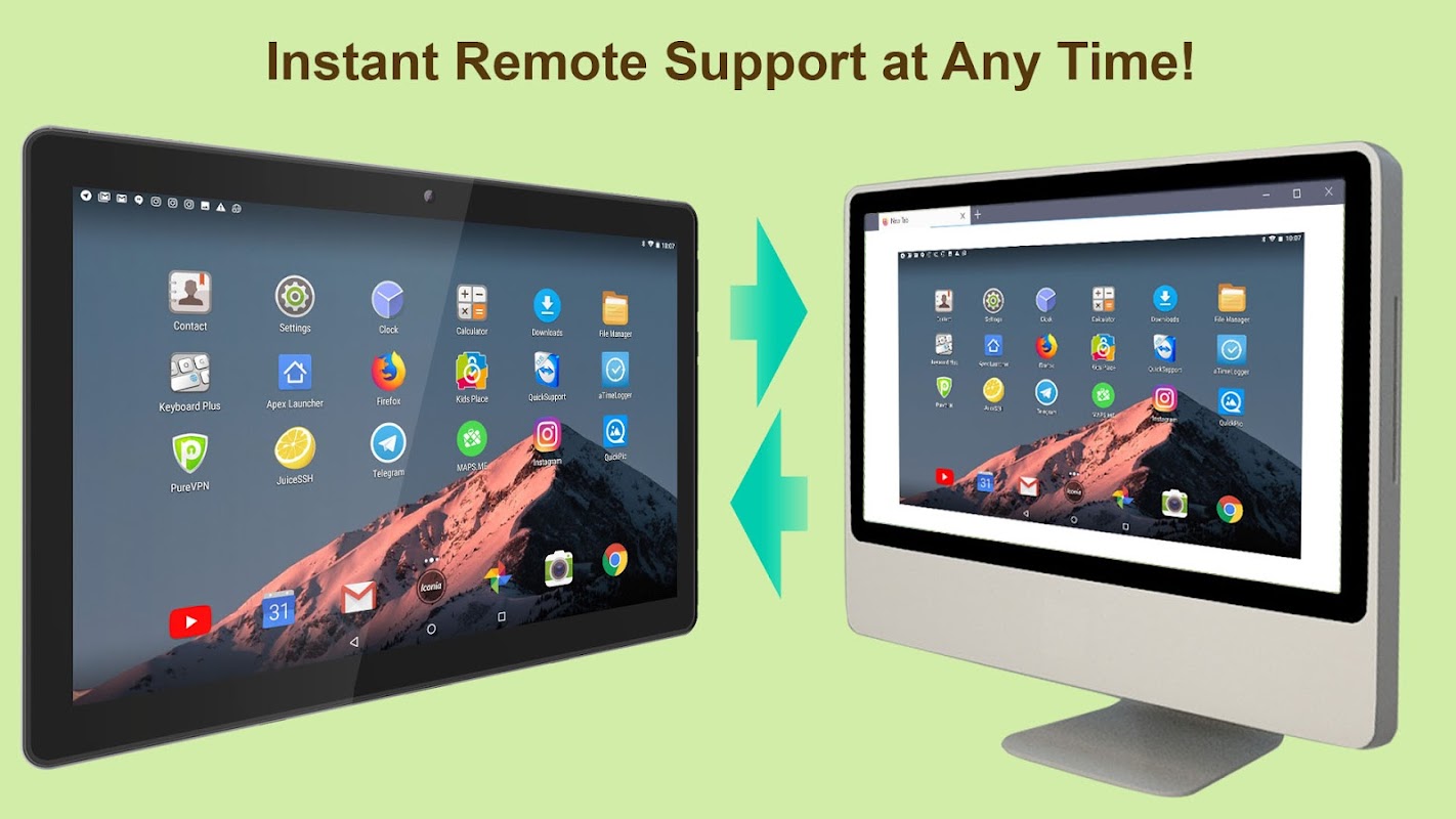 Pour partager l'écran de votre appareil et effectuer des gestes, aucun logiciel tiers n'est requis. Votre appareil Android est contrôlé à distance dans une application Web fonctionnant dans n'importe quel navigateur (Chrome est préférable). L'écran de l'appareil est mis en miroir pour un technicien de manière rapide et sécurisée.