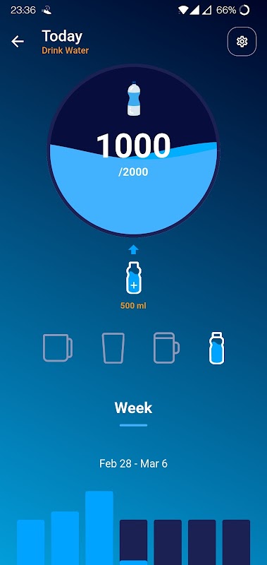 Vous pouvez suivre votre consommation d'eau quotidienne, ainsi qu'une fonctionnalité de notification d'eau intégrée qui fonctionne même sans Internet, et vous pouvez la personnaliser facilement. vous pouvez définir des rappels pour l'eau courante et l'eau potable