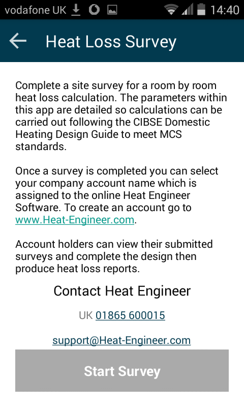 Heat Engineer a été conçu pour aider les chauffagistes et les géomètres à recueillir des informations sur une propriété pour l'installation d'un système de chauffage. Les options disponibles pour les rapports sur les pertes de chaleur sont les technologies renouvelables telles que les pompes à chaleur à air, les pompes à chaleur géothermiques, la biomasse ou les combustibles fossiles conventionnels.