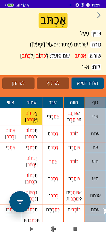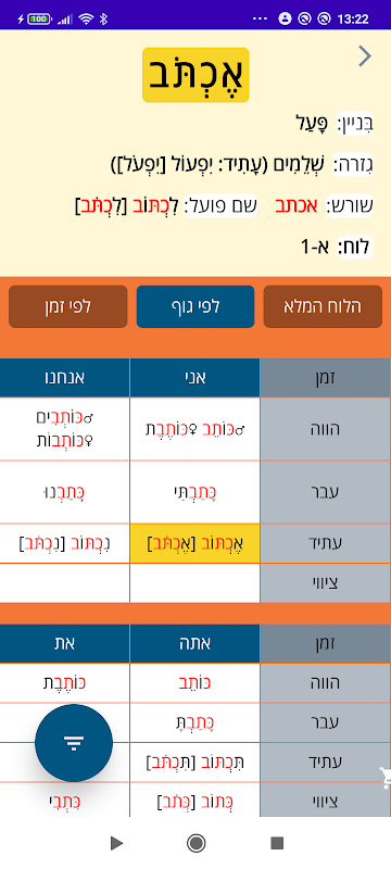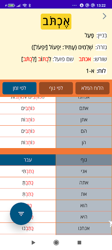 La construction et la conjugaison des verbes hébreux. Pour un meilleur apprentissage et une meilleure compréhension des principes de l'hébreu, cette application est dotée de fonctionnalités uniques :