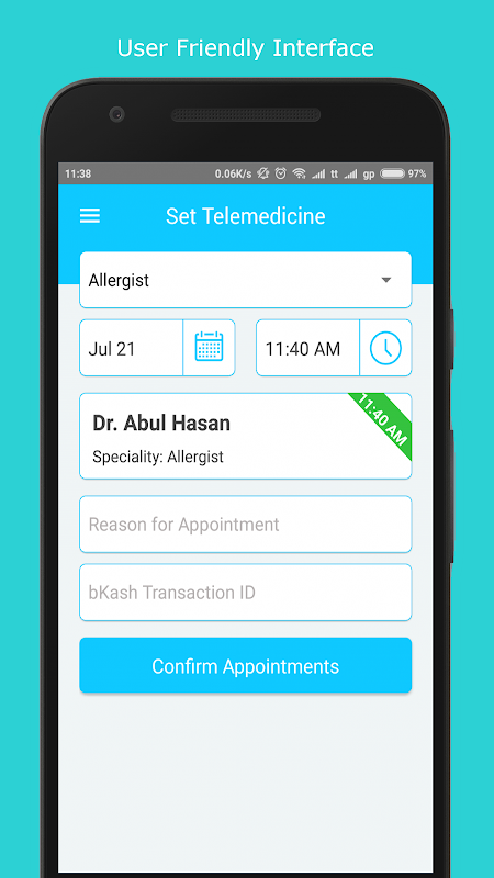 appointment You can select from a list of certified doctors, talk to a registered medical