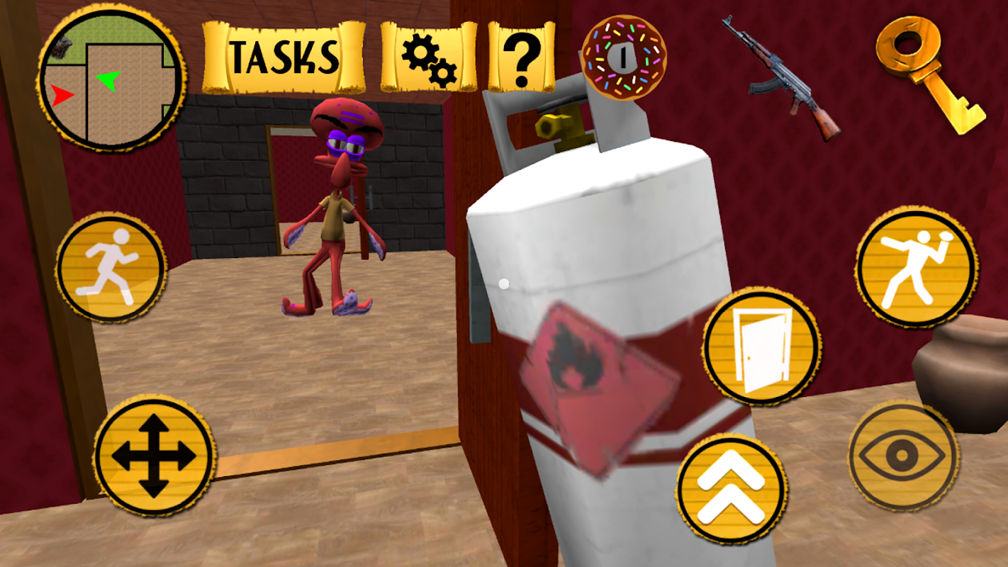 Search and use of useful items. Find a gas can, pipe wrench, keys and the like - all this will be very useful to you in the Squid neighbor's house! In Hello Squid. Sponge Neighbor of Bob 3D the neighbor himself, apparently, is a pretty dangerous octopus. Stay unnoticed and uncover a terrible Squid's secret!