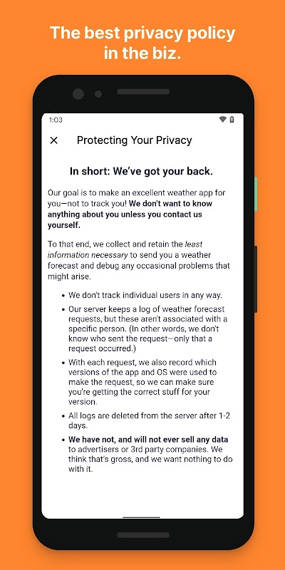 Salut, nous sommes Dan, Jonas, Trevor, l'équipe derrière Hello Weather. Il existe un million d'applications météo, et elles sont toutes surchargées de publicités laides, d'interfaces déroutantes et de gadgets stupides. Nous pensons que cela pue, alors nous avons créé l'antidote - une application simple et sans fioritures qui est un plaisir à utiliser.