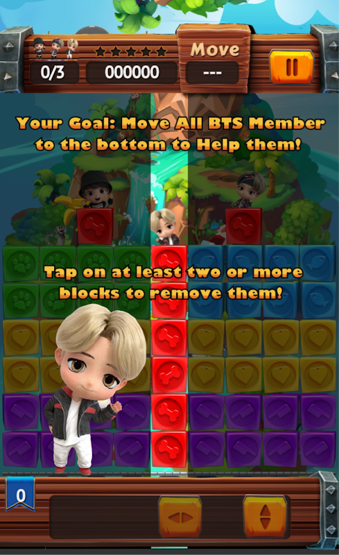 first open the game and help all BTS tiny tan member to down. using klik the block with same color.