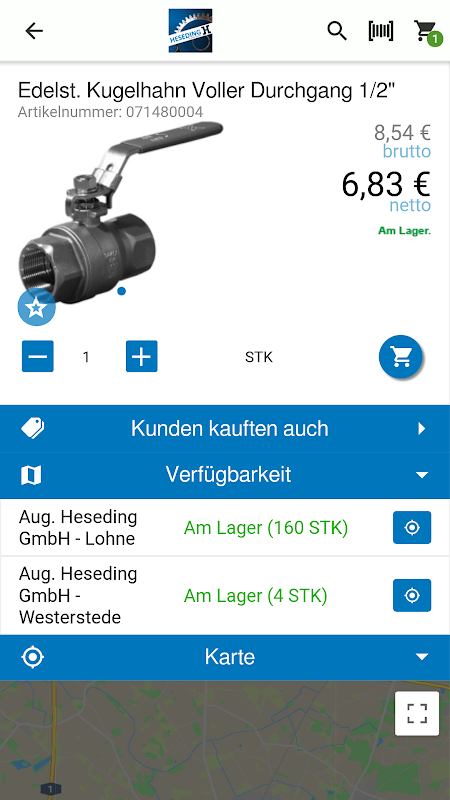 zuzugreifen. Mit dieser App können Sie jederzeit von unterwegs z.B. Artikelverfügbarkeiten prüfen
