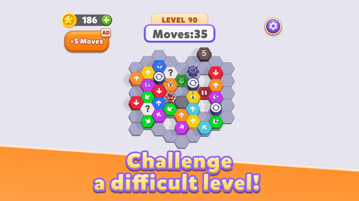 - Facile à jouer : Touchez les tuiles hexagonales marquées de flèches pour les déplacer dans la direction indiquée et les faire sortir de la pile. Les règles sont intuitives et faciles à comprendre.