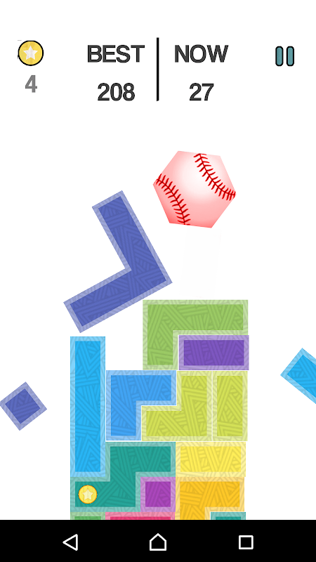 (The goal is to keep the six hexagone figure on the tower of blocks and not let it fall off for as long as possible and get star block to unblock a new six hexa )