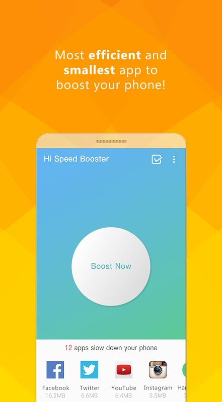 Hi Speed Booster (nettoyeur) est efficace pour booster (nettoyer) la mémoire du téléphone et conserver la rapidité de votre téléphone. Elle est tellement intelligente que l'effet de son boost dure plus longtemps que les autres; et la taille de son pack d'installation est de seulement 1 Mo. C'est vraiment un super nettoyeur et booster pour votre téléphone.