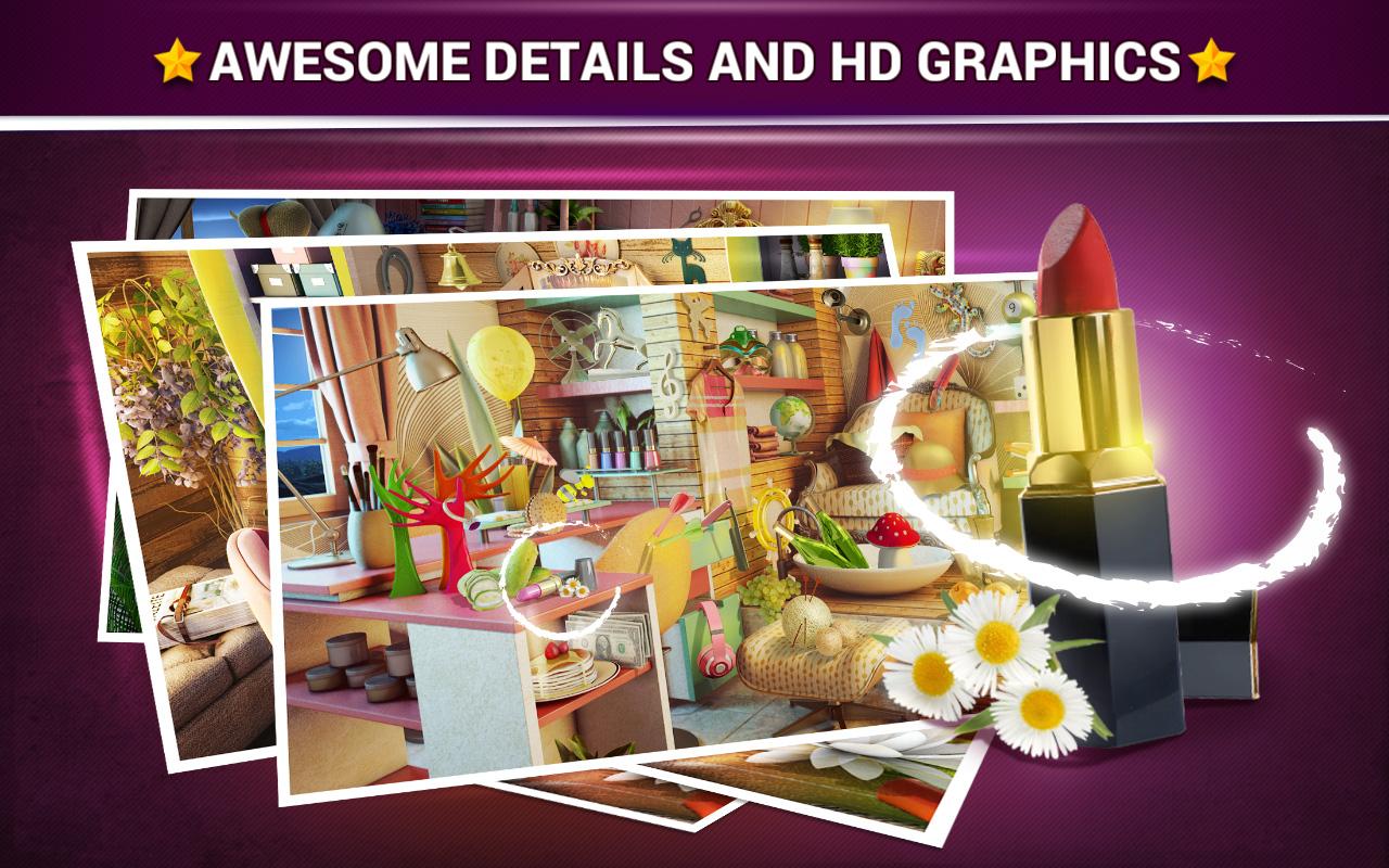 Entrez le salon de manucure magique et enchantez vous avec des meubles mignons et belles couleurs! Il est temps pour certains maquillage, mignons ongles et styles de cheveux impressionnants! Visitez votre salon de coiffure et de beauté et commencez à chercher des objets secrets dans "jeux de photo". Cherchez et trouvez des choses cachées telles que mignonnes statues, des serviettes et des parfums dans ces "jeux d'objets cachés de fille"! Nous vous offrons une chance d'améliorer votre téléphone avec tant de sophistication et d'élégance! Le meilleur jeu d’objets caché gratuit est en attente pour vous! "Objets Cachés Salon de Beauté" vous offre une chance de jouer un jeu de fille à la mode qui est en même temps éducatif et amusant! Commencez à jouer aujourd'hui et voyez par vous-même!