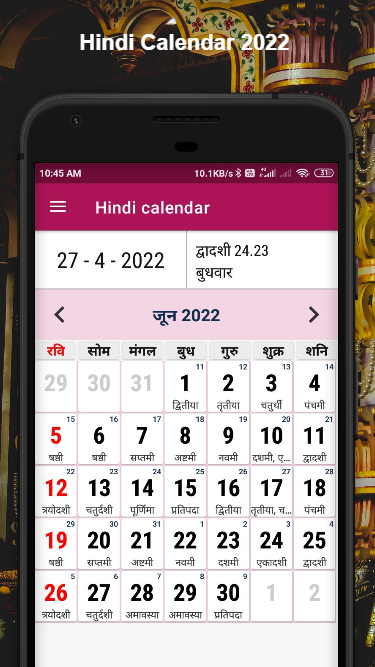 Hindu calendar 2022 app that allows you to view Indian government holidays for 2022, Hindi Sanatan calendar 2022 and also Hindi panchanga information 2022.