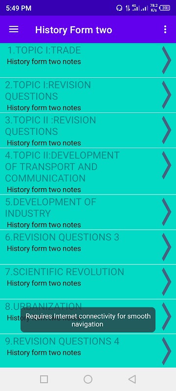 L'application propose un historique complet et bien expliqué sous forme de deux notes ainsi que des questions de révision après chaque sujet parmi les suivantes :