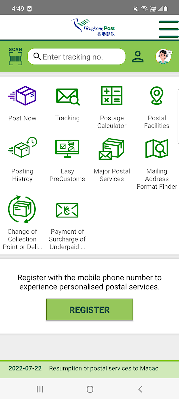 La nouvelle version de l'application mobile Hongkong Post adopte une interface facile à utiliser avec des fonctions populaires améliorées, offrant une expérience améliorée à nos clients.