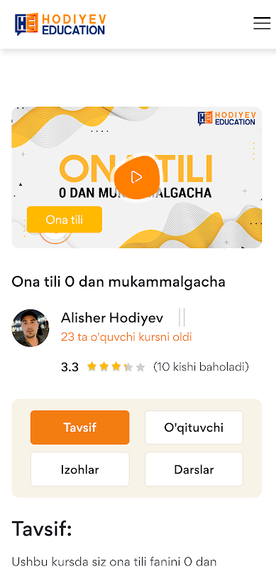 Hodiyev Education, ona tili va adabiyot fani uchun Buxoro o'quv tizimiga asoslangan, asosan, abituriyentlarga mo'ljallangan kuchli online repetitor ilova.
