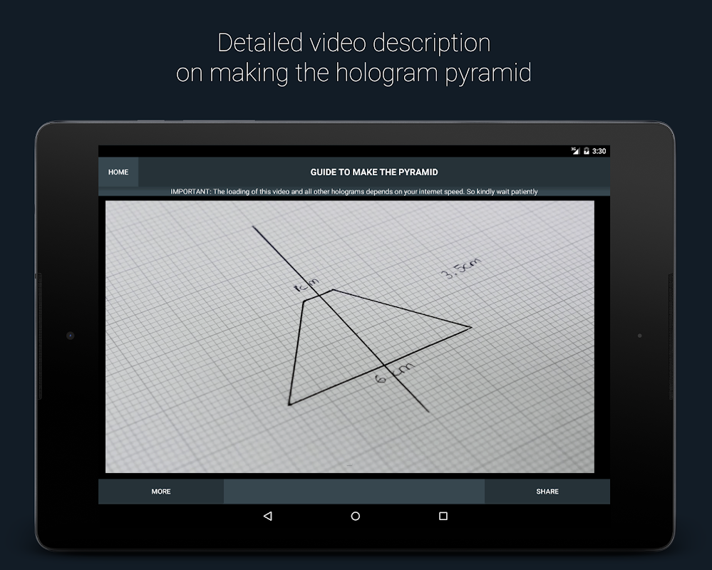 Un hologramme est un 3 dimensions de rendu d'une image ou d'une vidéo et de les faire converger dans l'espace de sorte qu'ils semblent être là dans l'espace. Cette application utilise une pyramide bricolage simple qui fait le même travail que la machine holographique. hologrammes sont codées de telle manière qu'ils sont en convergence et de produire une animation holographique parfaite sur le dessus de l'écran de votre smartphone. Cela est si simple et ne prendra pas plus de 5 minutes à faire. Le guide pour faire la pyramide est disponible dans l'application.