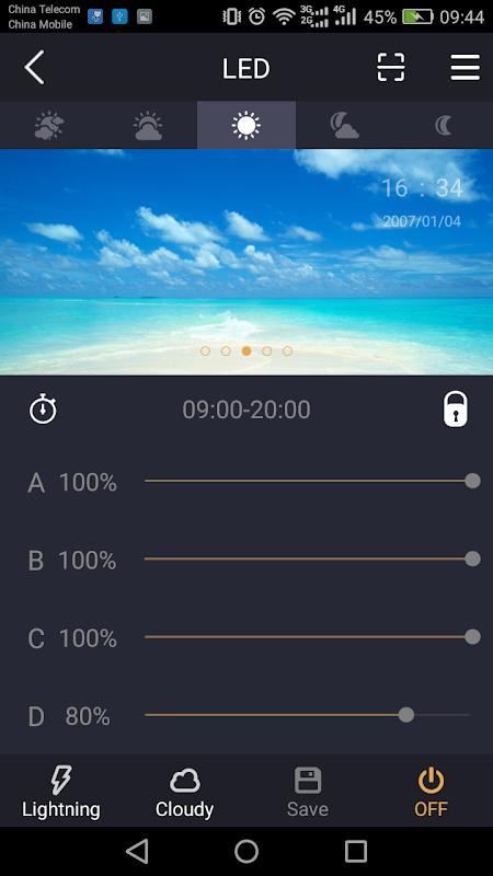 LED LIGHT: Control the brightness, Time duration, Weather mode, Lunar phase, Acclimation, Sleep mode, Demo mode. Share Light setting through a QR code.