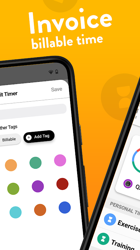 Le suivi du temps ne doit pas être fade ou ennuyeux. Avec une palette de couleurs de 15 couleurs vives et un sélecteur de couleurs personnalisé à portée de main, vous disposez de centaines d'options pour rendre votre interface utilisateur aussi colorée et unique que vous.