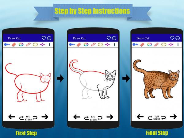 Cette application pour dessiner un chat et un chien est simple et facile à utiliser. Il peut vous aider à apprendre à dessiner à l'aide d'instructions étape par étape exceptionnelles et d'un didacticiel complet. Vous voulez surprendre vos amis ou simplement apprendre à dessiner un chat et un chien ? Alors ce livre de dessin est le meilleur pour vous.