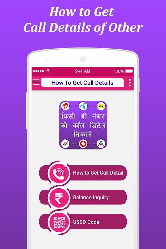 How to get call details of any number application helps the Indian prepaid telecom users to find the numbers for specific operations like Recharge, Main, Message, Net Balance enquiry, Finding own number and Customer care number. As of now app supports telecom operators like Airtel, Aircel, Idea, Vodafone, Uninor, Tat Docome, BSNL and Reliance.