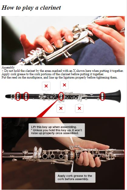 Assemblage : Apprenez à assembler et démonter correctement votre clarinette, en vous assurant que toutes les pièces s'emboîtent en toute sécurité et en douceur. Prenez soin de manipuler les touches et mécanismes délicats avec des mouvements doux et délibérés.
