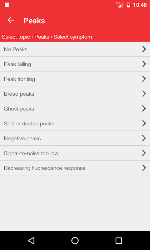 Le scientifique HPLC Guide de dépannage App Thermo est un outil pour diagnostiquer efficacement vaste divers problèmes potentiels avec l'analyse par HPLC. Les solutions vont de questions générales de nature qui sont communs aux paramètres de configuration standard de différents fabricants de dépannage technologies spéciales comme les nano LC, fluorescence, aazerosol chargé et détection électrochimique.