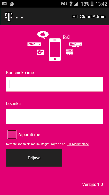 Cette application peut être utilisée uniquement pour les administrateurs des services ci-dessus. Dans l'application s'il vous plaît appliquer avec vos données utilisateur existantes. Si vous n'êtes pas déjà inscrit les services ci-dessus, s'il vous plaît de les activer d'abord par marché TIC portail https://ictmarketplace.hr/.