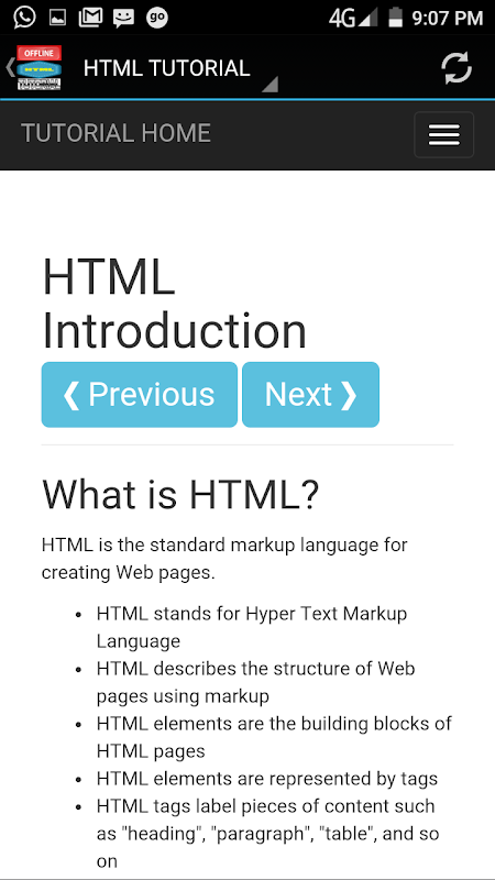 HTML Tutorial Offline App is a Complete Offline Guide Through HTML. You Can Learn Very Basic Fundamentals Of HTML To An Advanced Level Of HTML In Step By Step