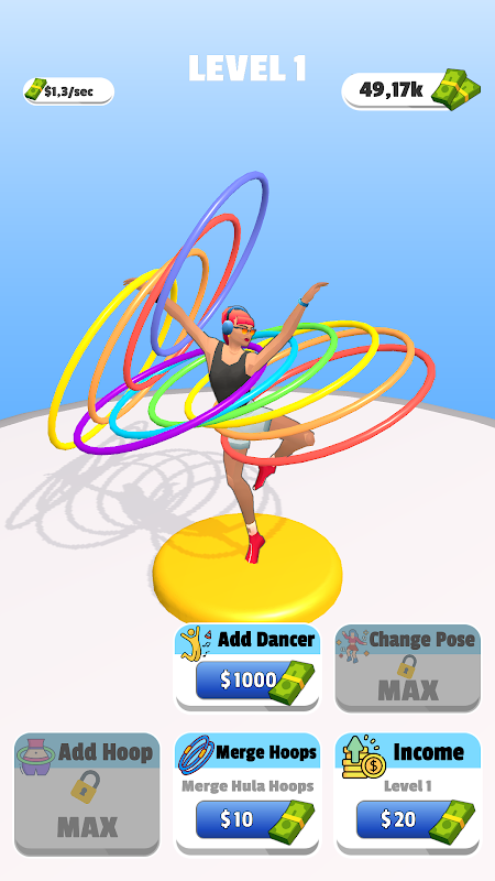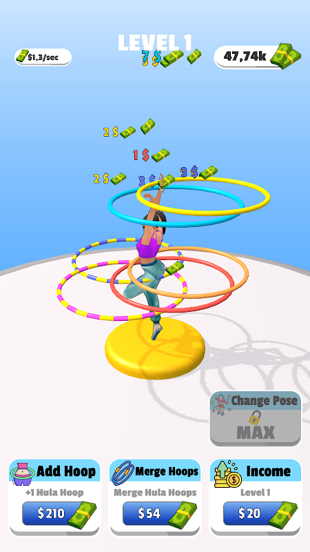 Pour obtenir plus d'argent, vous pouvez appuyer sur l'écran pour augmenter la vitesse de rotation de tous les Hula Hoops.