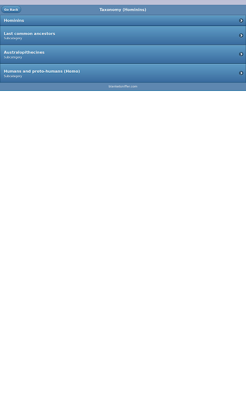 bien catégorisés application pour atteindre les connaissances sur l'évolution humaine