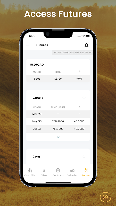 Consultez les offres au comptant en direct et vendez des céréales instantanément – plus besoin d'attendre les rappels ! Avec les alertes opportunes de l'application, vous ne manquerez jamais d'opportunités de marché.