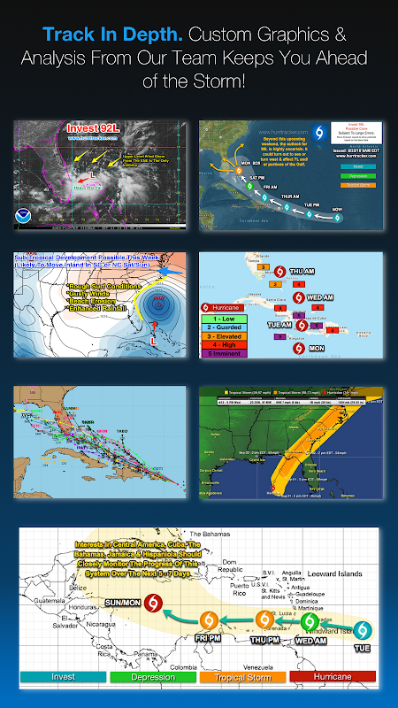 • Graphiques personnalisés de notre équipe d'experts. Cartes exclusives "Niveau d'alerte" et "Potentiel d'impact". Pas seulement des informations de base sur le NHC.