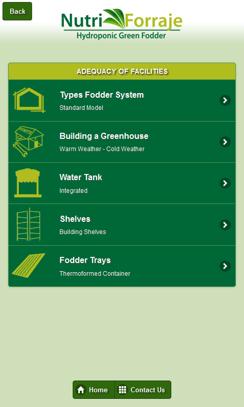 Hydroponique Fodder est une application qui vous permettra de connaître en détail la mise en œuvre d'un projet de hydroponique vert Fourrage. Pour tous ceux qui cherchent des solutions alternatives au problème de la sécheresse et la pénurie de fourrage dans l'alimentation de leurs animaux.
