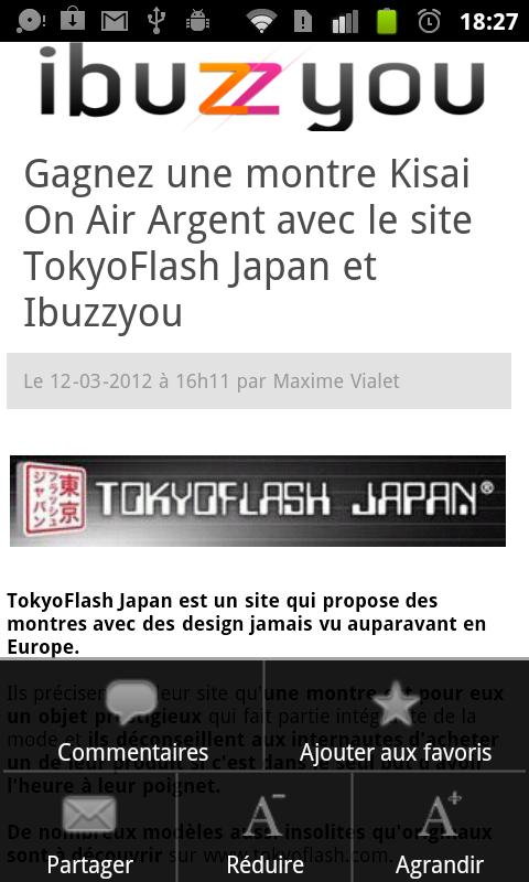 Vous pourrez également mettre en favoris vos articles préférés pour les retrouver plus rapidement mais également les partager sur Facebook, Twitter et par mail. Mais également, les commenter directement depuis l'application.