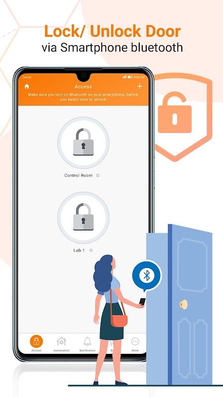 - Déverrouillez les portes installées avec des appareils compatibles Bluetooth utilisant la technologie BLE