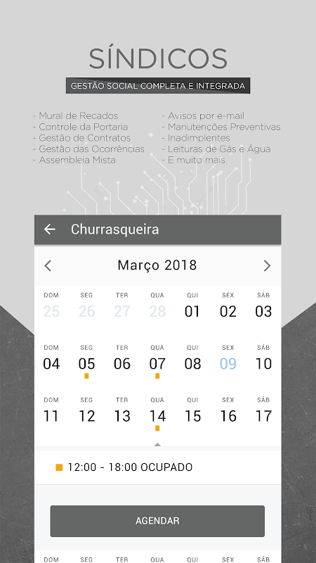 Possibilidade do morador agendar o salão de festas, convidar os amigos, visualizar as câmeras, abrir as portas e ser notificado quando seus amigos chegarem no Condomínio.