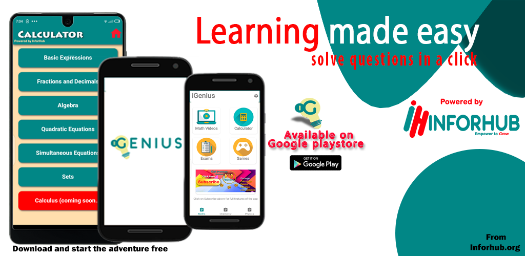 IGenius vise ce tuteur personnel de poche qui peut vous répondre à tout moment. Avec IGenius, vous êtes prêt à saisir quelques distinctions. C'est votre compagnon arithmétique qui est toujours disponible en cas de besoin. Nous espérons rendre l'éducation et tout le processus d'apprentissage simples et amusants. s'il vous plaît profiter de cette application gratuitement ..