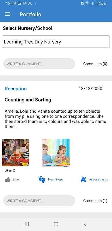 - Affichez les activités en direct dans le journal d'apprentissage de votre enfant, agrandissez des photos et lisez des vidéos / clips audio