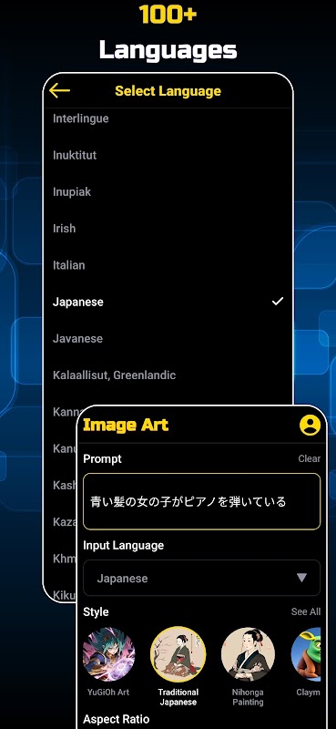 ► Entrée multilingue : générez des images IA à l'aide d'invites textuelles dans plus de 100 langues.