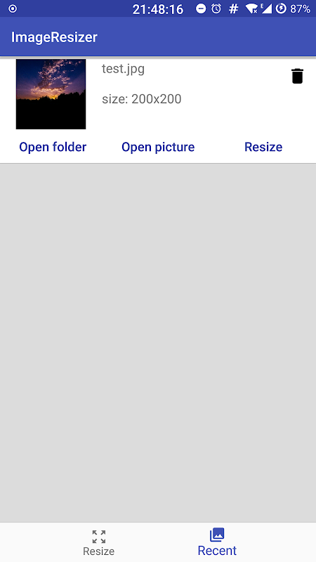 Furthermore you can view your lately rezised pictures and view them or resize them again.