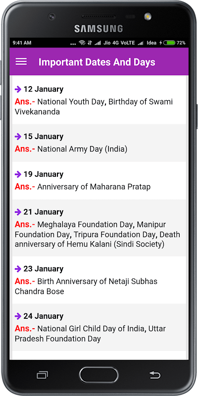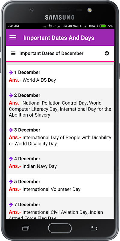 Aujourd'hui, ici, nous allons partager une liste des jours importants nationaux et internationaux et les dates des chemins de fer, SSC et autres concurrentiels Exams.Usually, 2-3 questions de cette liste peut être vu dans tous les examen concurrentiel prise un sujet très important pour les étudiants qui se préparent honnêtement pour les examens concurrentiels. Ainsi, afin de mieux préparer, vous devez vous rappeler cette liste de dates / jours importants de l'année. Cette liste vous aidera à connaître les jours importants à la fois nationale et internationale à savoir l'Inde et du monde.