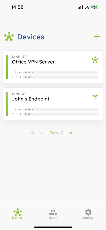 Afin de configurer une connexion VPN au réseau de votre entreprise depuis votre domicile, au moins deux périphériques VPN sont nécessaires, un serveur VPN connecté au réseau local de l'entreprise et plusieurs points de terminaison VPN pour vos bureaux à domicile. L'application InConnect Admin aide à configurer ces appareils VPN en scannant leurs codes QR. C'est ça. Branchez-les et commencez à utiliser le lien sécurisé vers votre bureau depuis chez vous.