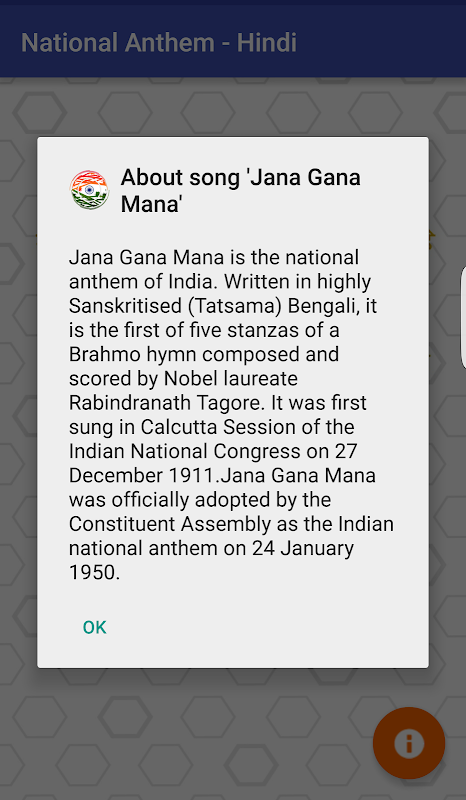 - Includes the national anthem (jana gana mana) in hindi and english inside application.