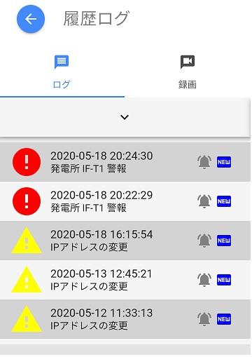 1.監視したい発電所を登録すればリアルタイムに発電所からの警報メール、プッシュメッセージが複数のユーザに届き、カメラが自動録画しながら現地状況を確認して対応することができます