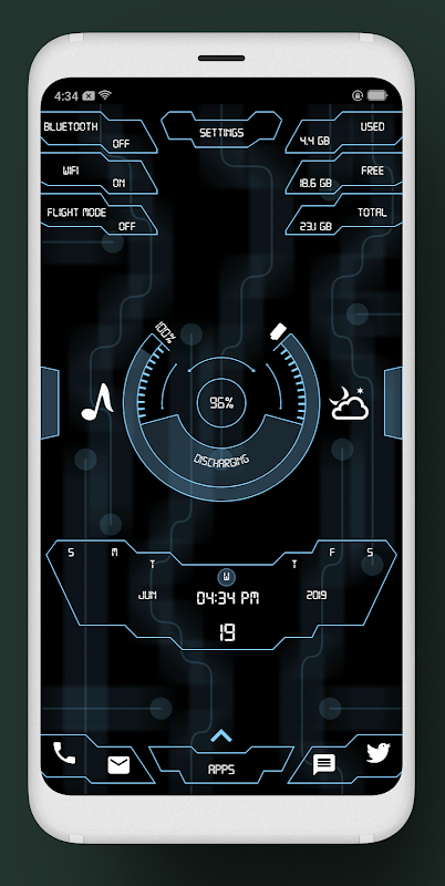 Le lanceur hi-tech Innovation est une interface utilisateur de nouvelle génération conçue spécialement pour les téléphones Android. La haute performance et la conception high-tech donneront à votre appareil un nouveau look incroyable. Jouez avec les thèmes de couleur de l'écran d'accueil et les animations; personnalisez votre appareil pour le rendre vraiment high-tech.