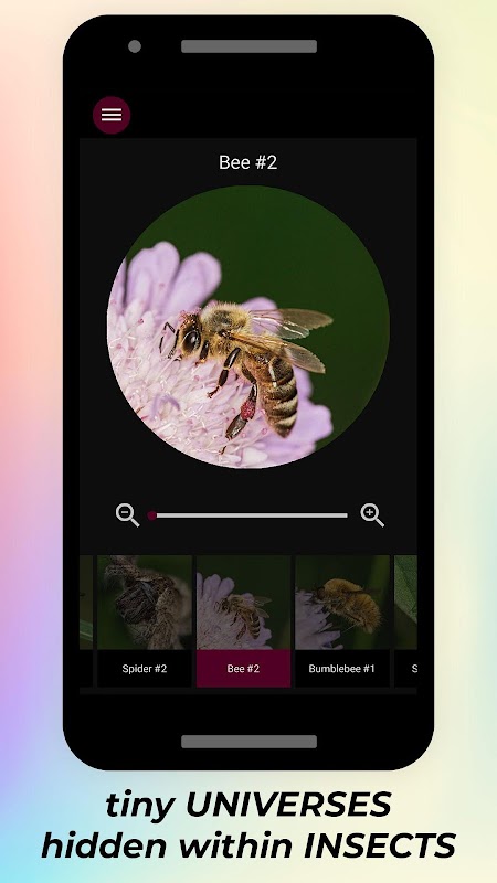 À quoi ressemble le monde microscopique des insectes? L'application Insectes au microscope présente les insectes photographiés au microscope. Cette application permet aux utilisateurs élémentaires supérieurs d'en apprendre davantage sur les insectes.