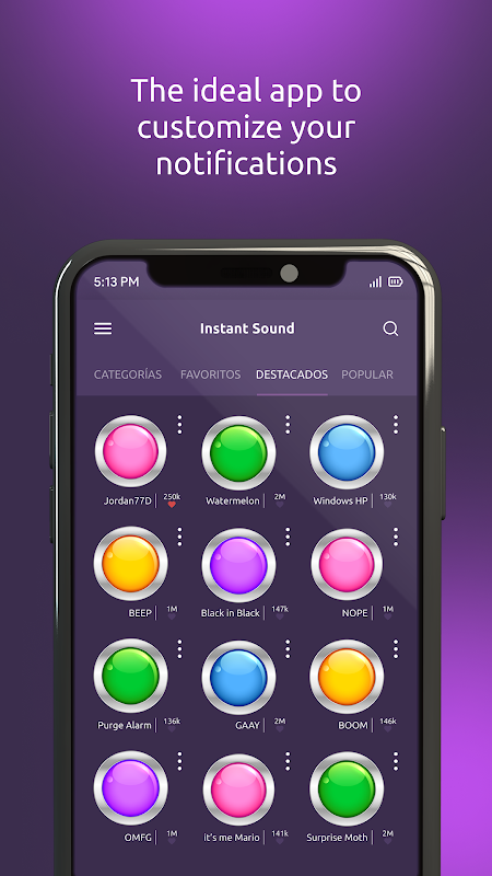 Explorez notre bibliothèque de sons avec « Instant Sounds Board », vous offrant l'accès à plus de 400 effets sonores variés. Des mèmes tendances des réseaux sociaux aux citations de films classiques, en passant par les bruits emblématiques des jeux vidéo et tout le reste, cette application a tout pour plaire. Organisez vos effets préférés dans des catégories personnalisées pour un accès rapide. Utilisez ces sons pour personnaliser les notifications de votre téléphone, vous amuser avec des amis ou même créer votre propre mix sonore. Ne manquez pas les effets spéciaux pour des moments humoristiques et romantiques et tous les derniers succès musicaux. En quête d'unicité ? "Instant Button Soundboard" est votre outil ultime pour personnaliser votre expérience audio. Abonnez-vous pour un accès illimité à toutes les fonctionnalités premium de l'application.
