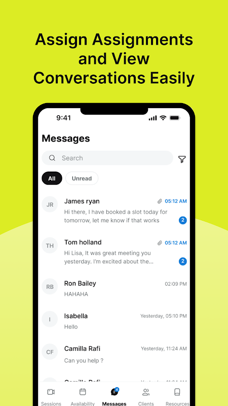 Consultez les séances à venir, accédez aux notes de cas, suivez les progrès et gérez les interactions avec les clients, en toute sécurité et en déplacement.
