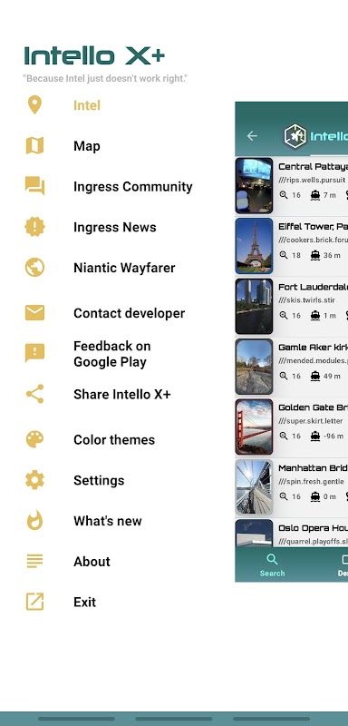 Intello X+ offre un accès facile aux emplacements des cartes Intel en quelques secondes. Avec un accès à n’importe quel emplacement dans n’importe quel niveau de zoom, utilisez Inello X+ pour vos OP Ingress Intel.