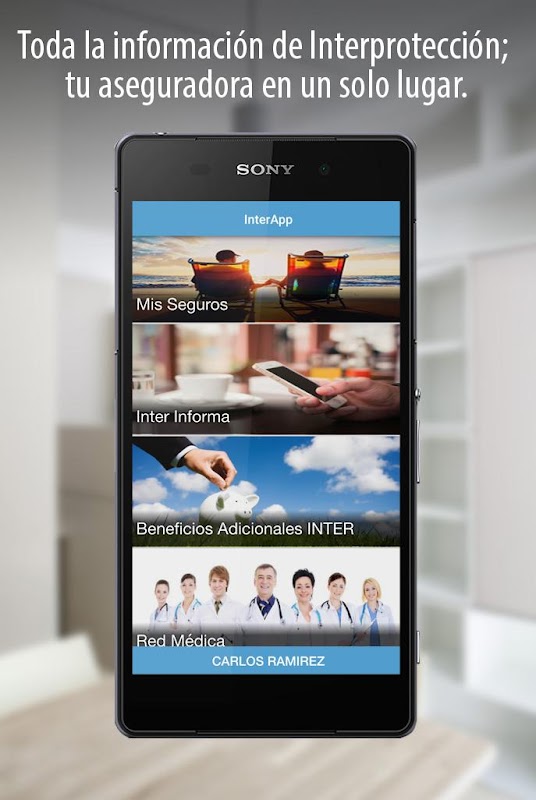 Interapp es una aplicación personalizada en la que encontrarás todo lo que necesitas saber acerca de tus pólizas como cliente de Interprotección.