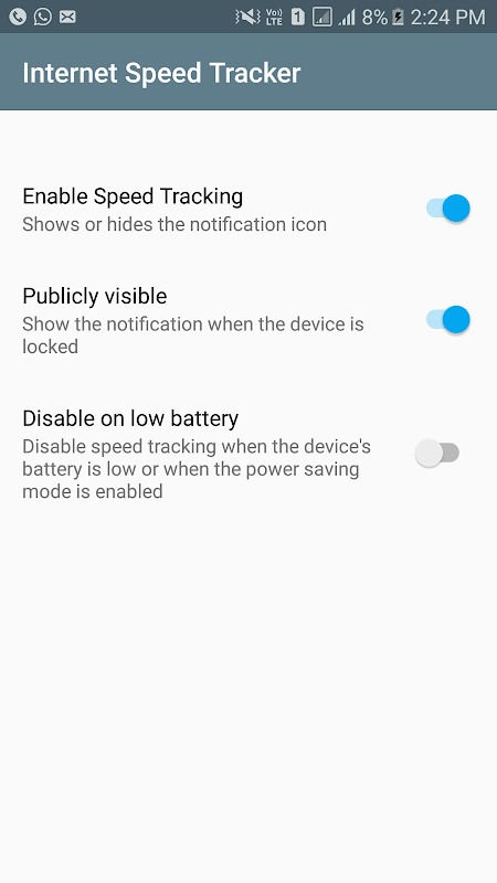 Internet Speed ​​Tracker affiche votre vitesse Internet en direct dans la barre d'état de votre appareil et affiche la quantité de données utilisées dans le panneau de notification. Il vous aide à surveiller la connexion réseau à tout moment lorsque vous utilisez votre appareil.